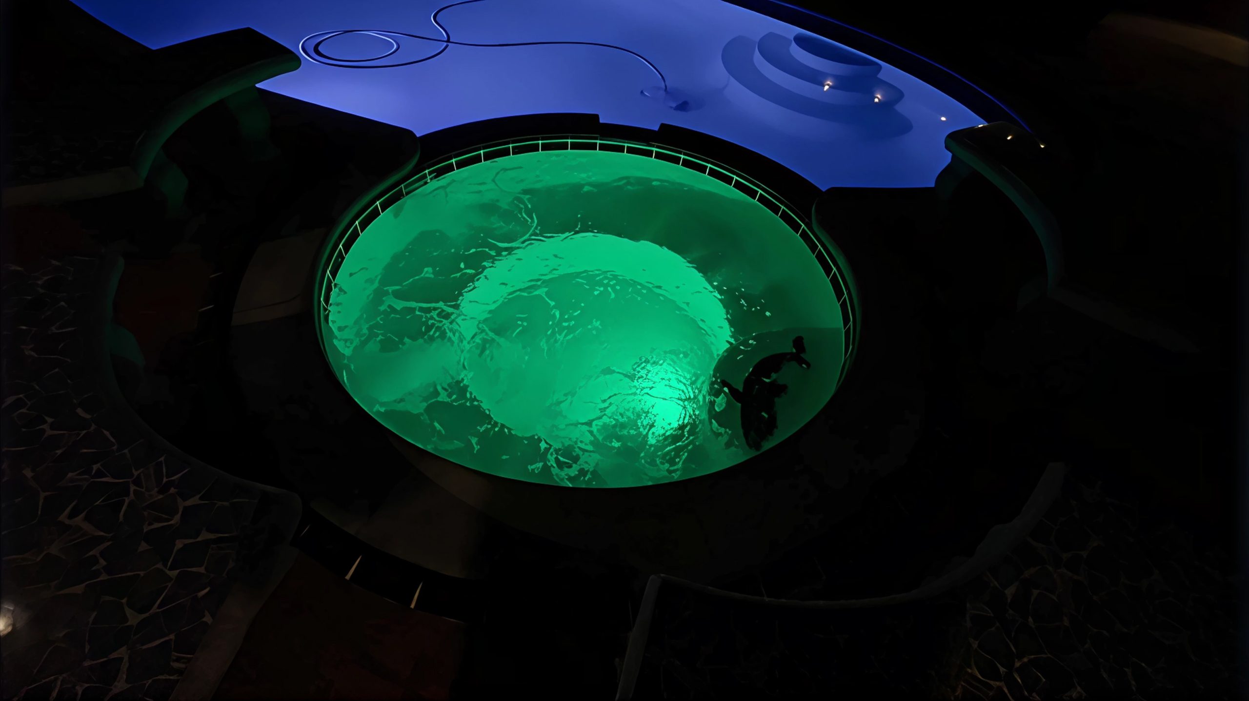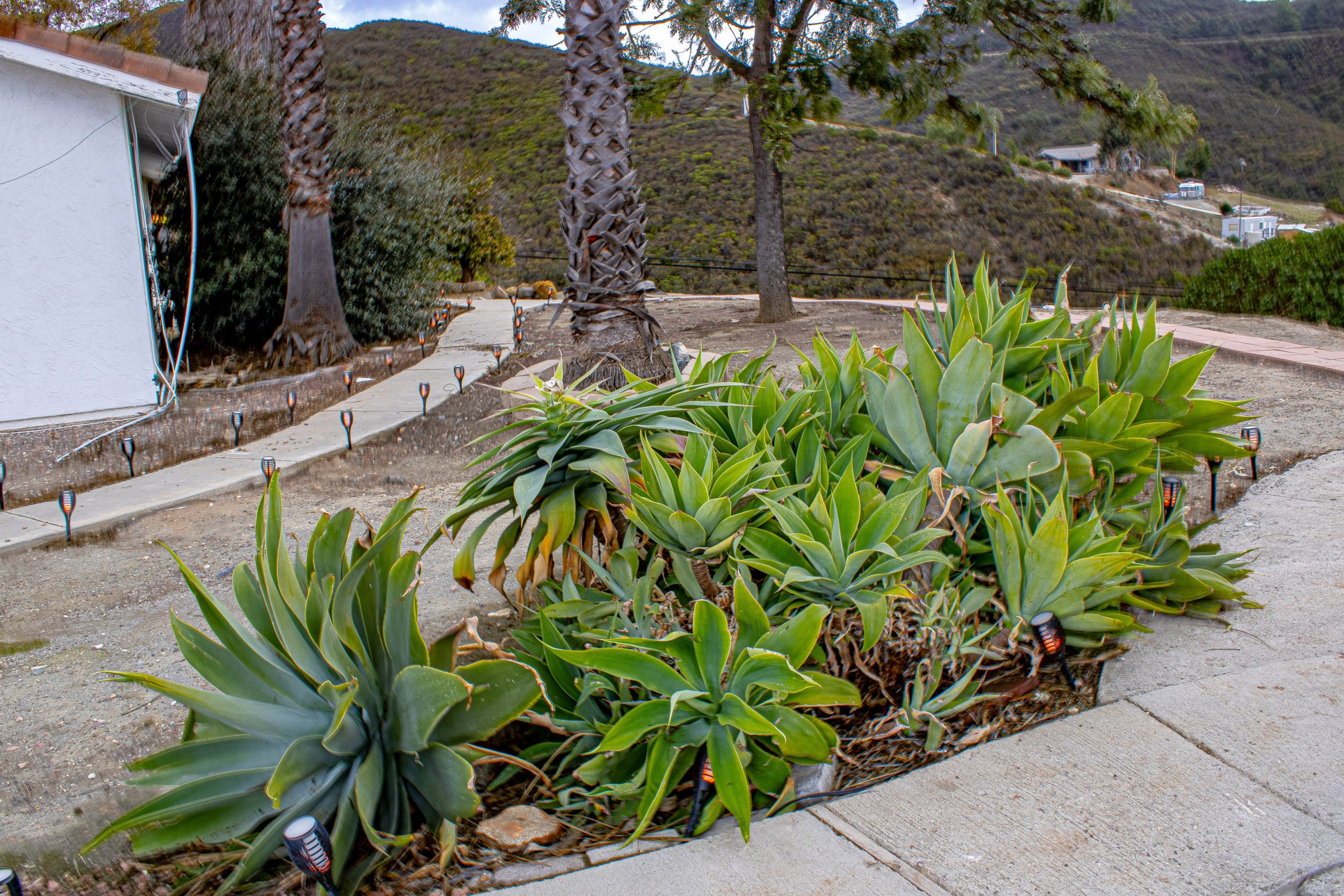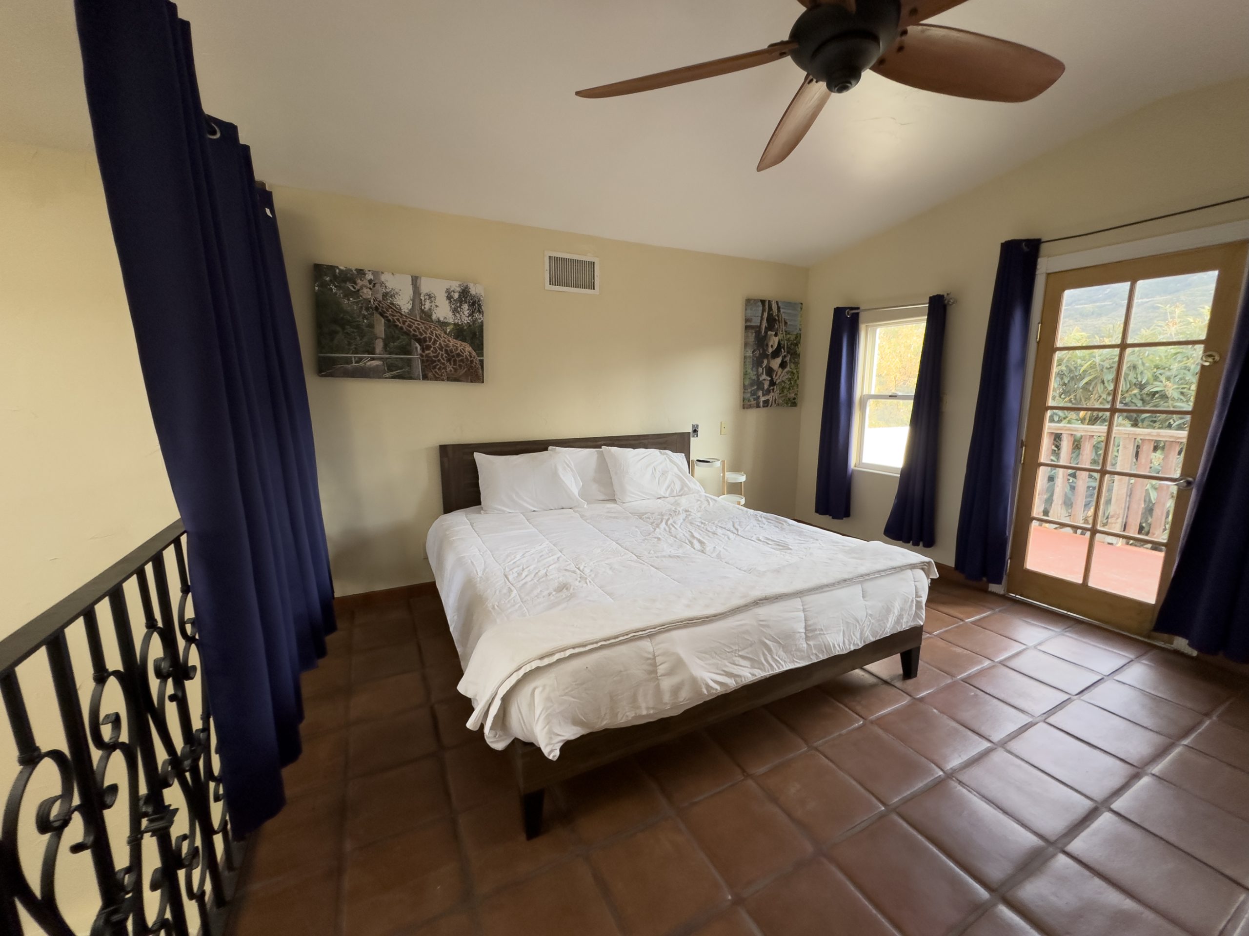 Bedrooms: An XL master bedroom, with a stand-alone jet tub and walk-in shower. Second bedroom is large as well, features a jack and jill bathroom with two showers leading to the third average sized bedroom. All bedrooms have king sized beds, some with “trundle” beds to handle extra guests. Two bedrooms feature sliding glass doors with entrance/exit to outside. Loft with private balcony and a palm tree hillside view serves as 4th bedroom.