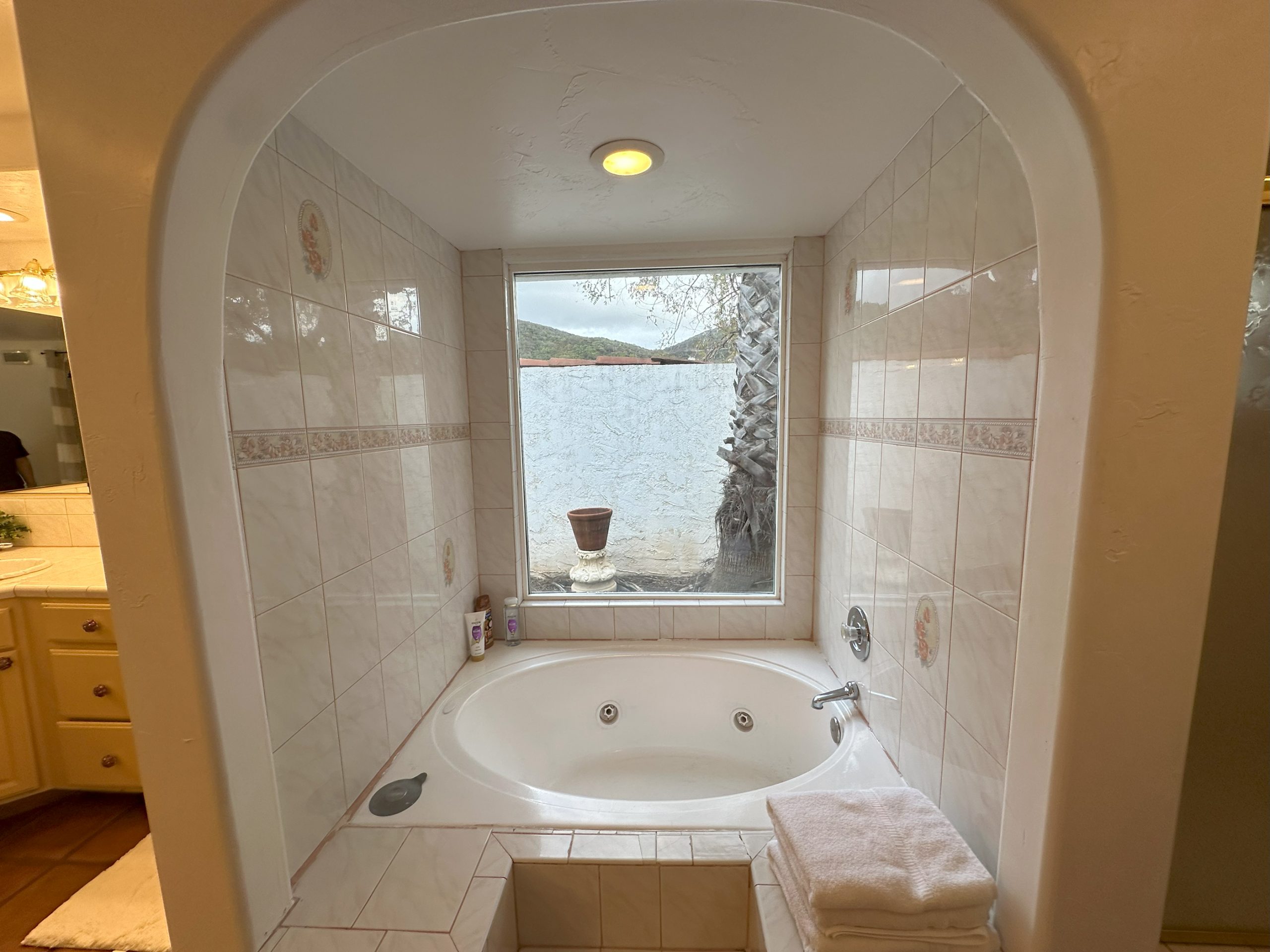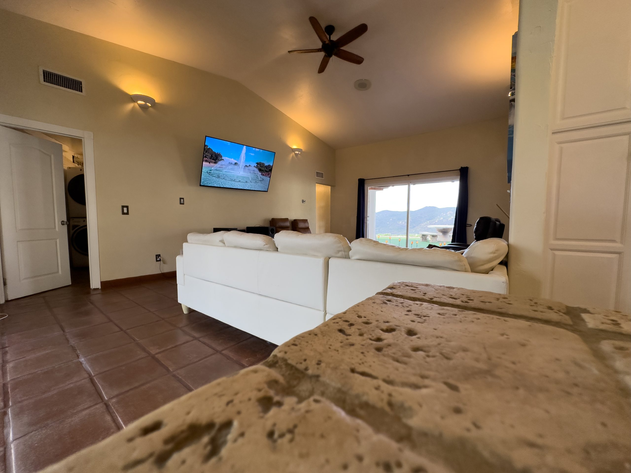 Grounds: Spread out and enjoy supreme privacy on the 8 acres. Features a small outdoor golf teeing area that you can also use for croquet, a driving range (no nets), & horse-shoes. Enjoy outdoor dining on the patio furniture in front and back of grounds. Sit by the pool and see the San Diego hills. Spa & Tennis Court currently closed. At night a part of the San Diego skyline is visible through the mountains.. Cook with a propane grill and charcoal grill.